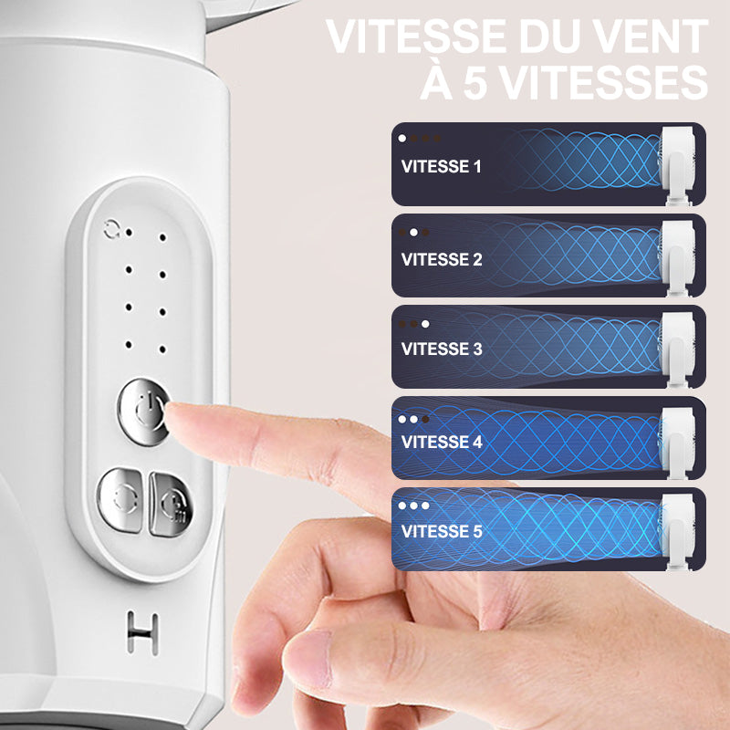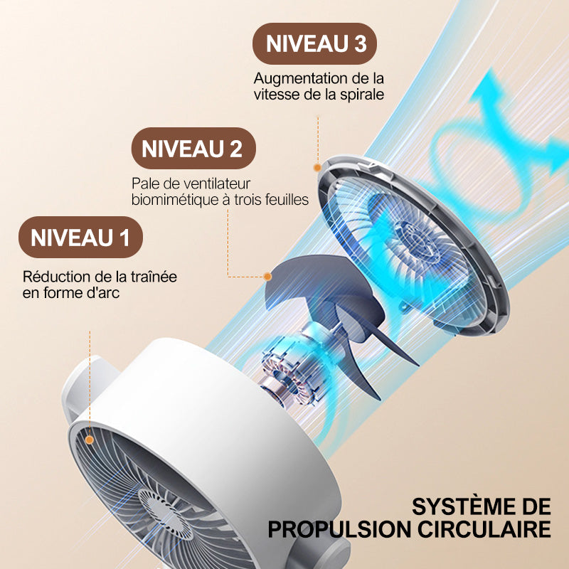 5 VITESSES AVEC MODE VENT NATUREL - Ajustez l’intensité du flux d’air, d’une brise légère à un refroidissement puissant. Le mode vent naturel imite la brise extérieure pour un confort prolongé, sans sensation artificielle de souffle constant.
