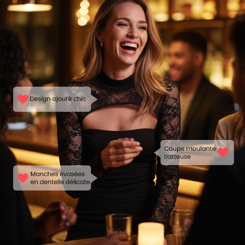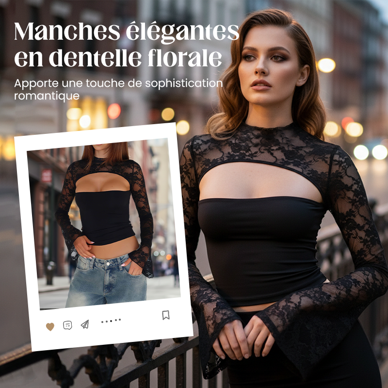 MANCHES ÉVASÉES EN DENTELLE ÉLÉGANTE – Des manches en dentelle florale délicate avec une évasement gracieux aux poignets offrent une texture romantique et féminine. Cet élément de design ajoute du mouvement et une touche de charme d’inspiration vintage à votre allure.