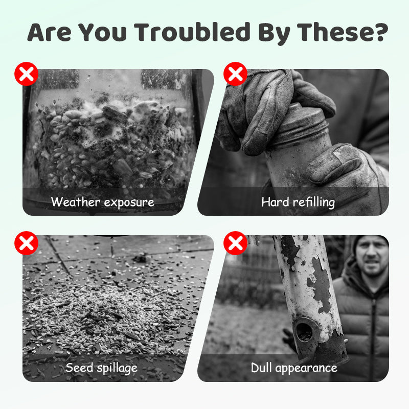 HOUSSE RÉSISTANTE AUX INTEMPÉRIES - L'auvent intégré protège les graines pour oiseaux de la pluie et de la neige. Cela garantit que la nourriture reste sèche et fraîche, attirant plus d'oiseaux dans votre jardin pour un plaisir de vue constant et réduisant le gaspillage.