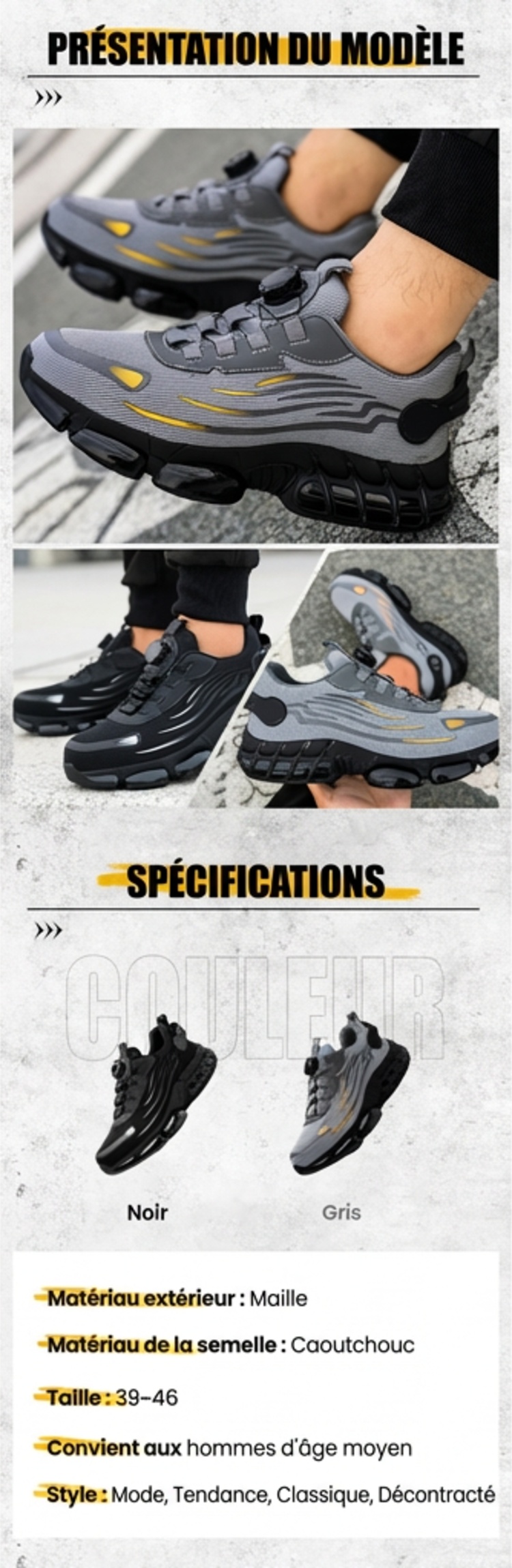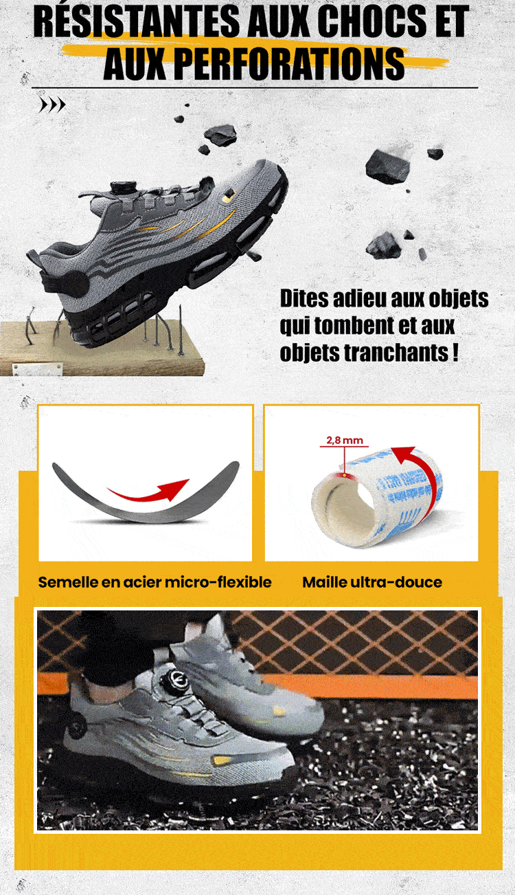 🔥 Spérificatrice gratuite-Unisex Sneakers Élégants Chaussures de sécurité non glissantes avec anti-choquage