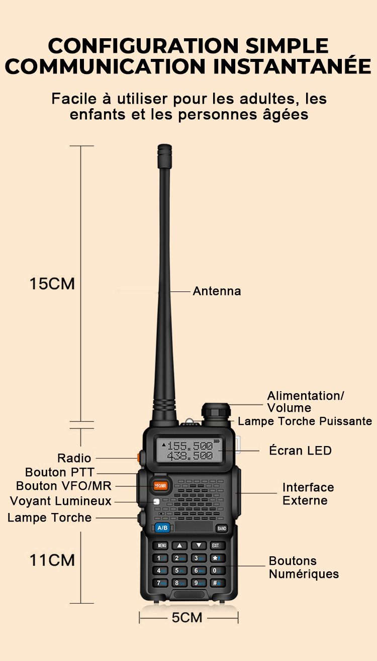 Radio amateur UV-5R longue portée UV5R Radio bidirectionnelle double bande Walkie